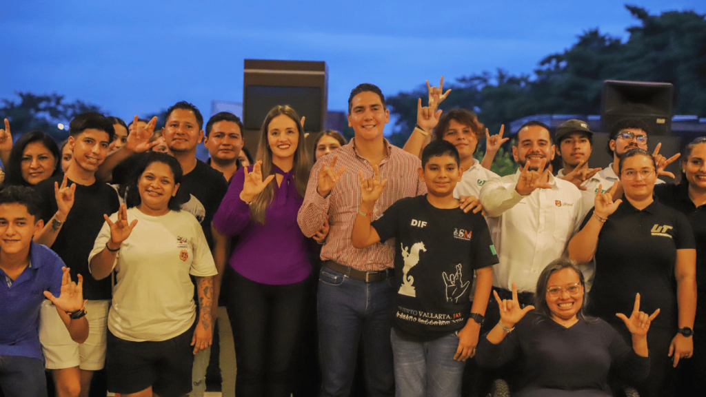 Bahía de Banderas, Nayarit, a 24 de septiembre de 2024.- El presidente de Bahía de Banderas, Héctor Javier Santana García, reafirmó su liderazgo y compromiso con la inclusión durante su visita a la Universidad Tecnológica Bahía de Banderas, en conmemoración del Día Internacional de las Lenguas de Señas. En este importante evento, estuvieron presentes figuras clave como Jesús Zárate, presidente de la asociación Cultura Sorda de Puerto Vallarta, la maestra de Lengua de Señas Mexicana María Isabel Baltazar, y Karina Quintero, coordinadora de Discapacidad de Bahía de Banderas.