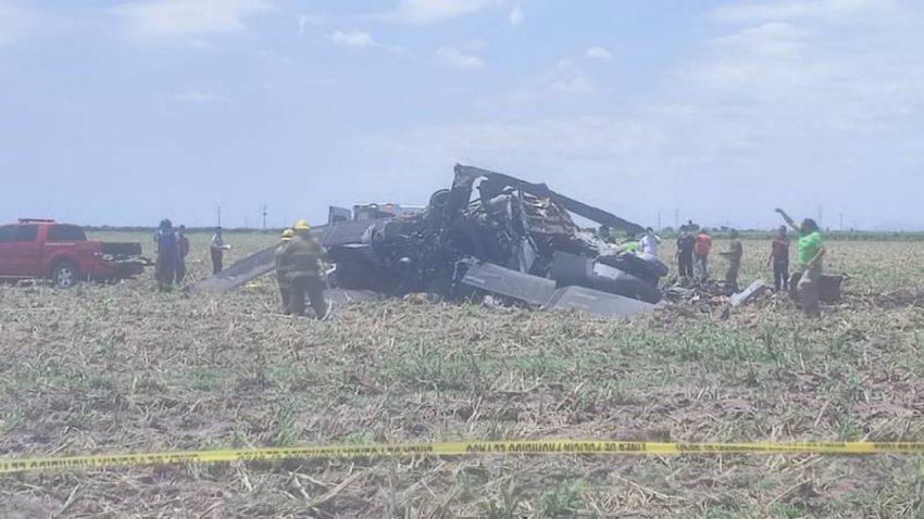 El accidente ocurrió poco después de las 14 horas en terrenos de siembra, entre el aeropuerto del valle del Fuerte y el puerto de Topolobampo, en la costa de la ciudad de Los Mochis.
