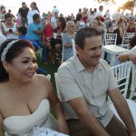 Otra historia que llamó la atención fue la de Adelita Carrillo Escobedo y César Romero Robles, vecinos de Puerto Vallarta, quienes luego de 15 años juntos y una hija, respondieron a la convocatoria del Sistema DIF, debido a que tienen familiares en Bahía de Banderas y una casa en Valle Dorado, a donde ahora piensan mudarse luego de su boda civil. Al preguntarles quién convenció a quién para formalizar su relación mediante el Matrimonio Civil, se miraron al mismo tiempo y dijeron “Los Dos”, sonrientes y agradecidos: “Somos vecinos finalmente, Vallarta y Bahía, muchas gracias a todo el municipio por éste evento tan bonito, por eso decidimos casarnos aquí”, expresa Adelita.