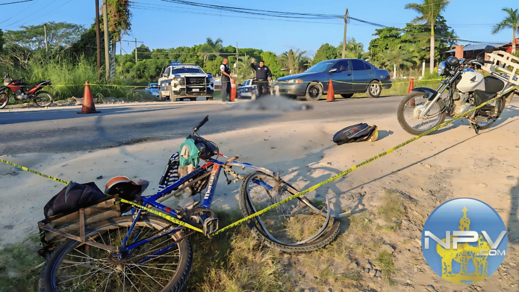 De acuerdo con los primeros reportes, el choque inicial entre la motocicleta, una Honda de carga color blanco, y la bicicleta ocurrió en la carretera que conecta hacia Valle de Banderas, a escasos metros de los arcos de bienvenida, cerca del cruce con la brecha de El Caimán.