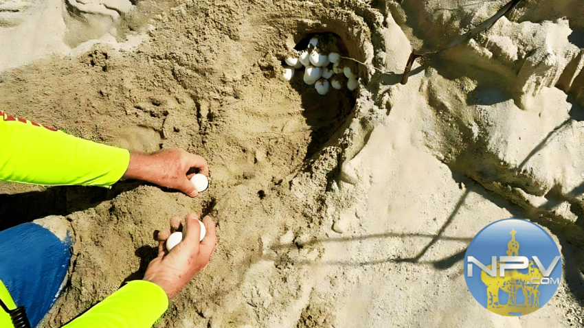 Elementos de la Dirección de Protección Civil de Bahía de Banderas atendieron un reporte ciudadano que solicitaba el rescate de huevos de tortuga marina, encontrados en la playa de Bucerías, cerca de la desembocadura del Arroyo del Indio.