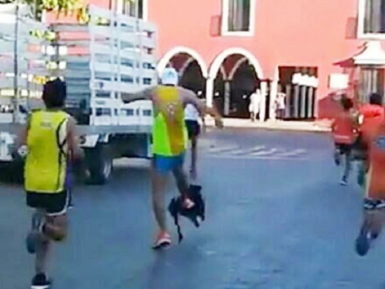 Un perro ladró al paso de los competidores durante una carrera celebrada en Valladolid, Yucatán, pero uno de los corredores reaccionó pateando al can ante la mirada de asistentes y participantes. La acción quedó grabada en video, el cual causó indignación en rede sociales.
