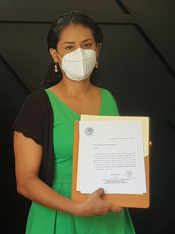 “Por primera vez en el país se impulsa la defensa gratuita de los derechos político-electorales de los pueblos indígenas, mujeres y grupos minoritarios vulnerables, salvaguardando la perspectiva de género” asegura Irina Graciela Cervantes Bravo, magistrada presidenta del Tribunal Estatal Electoral de Nayarit, TEEN.