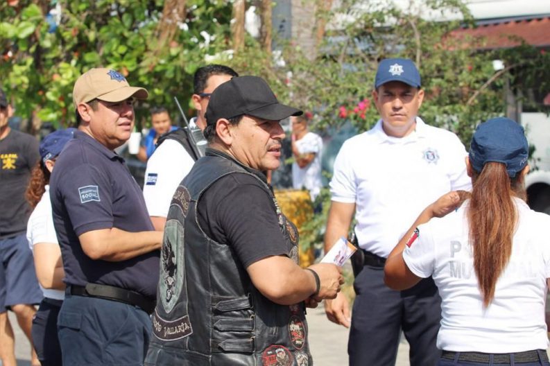 Encabezados por el Comisario Misael López Muro, clubes de motociclistas, agentes viales y de policía, distribuyeron folletos informativos en la zona de Fluvial Vallarta