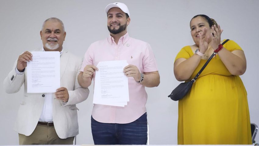 “Estamos en la ruta de fortalecer el crecimiento académico, darle una relevancia y un nuevo brío a la vinculación entre el gobierno municipal y todo el gremio magisterial”, aseguró el alcalde al señalar que son muy buenas noticias para la docencia, ya que con este convenio podrán incrementar su nivel académico, al acceder a programas de nivelación pedagógica para la obtención de licenciaturas, postgrados, maestrías, doctorados y titulación express para quienes tienen estudios terminados o truncos de maestría o doctorado.
