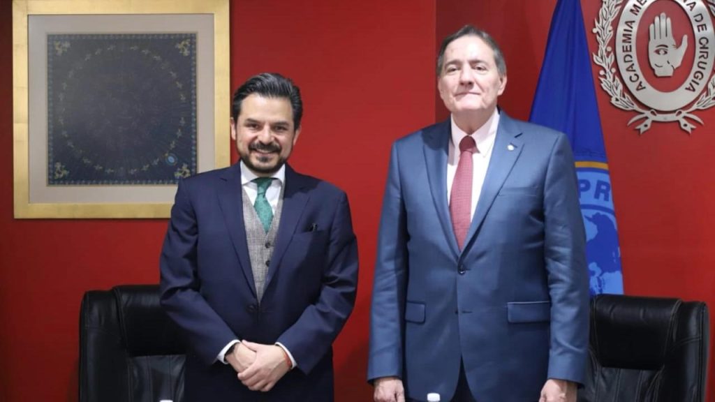 En la sala de juntas de la Academia Mexicana de Cirugía, acompañados de sus equipos de trabajo, compartieron su visión en temas como el combate a enfermedades crónico degenerativas, prevención y control de padecimientos cardiovasculares, transformación digital en el IMSS, fortalecimiento del Primer Nivel de atención y de programas preventivos para las personas trabajadoras como la estrategia Entornos Laborales Seguro y Saludables (ELSSA).