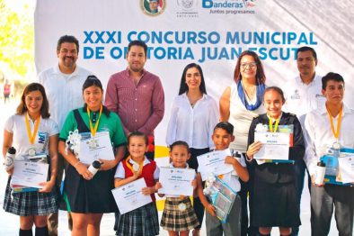 “Gran parte del trabajo que se tiene que hacer en un gobierno, no es solo en infraestructura y servicios, sino también la educación; las actividades culturales y eventos como este, nos permite seguir fomentando el gusto por la Oratoria. Ya son 31 años, en el mismo año en que se instituyó el Municipio en 1989, también nace este concurso; y el que ustedes estén aquí ya los hace ganadores porque tienen un talento y una habilidad que desarrollaron desde el Kínder y que están fomentando junto con sus maestros y padres, ¡Felicidades a todos!”, comentó el Alcalde bahiabanderense, quien estuvo acompañado de su esposa, la L.T.S. Ana Esperanza Berumen, presidenta del Sistema DIF y las regidoras Haidé Saldaña y Rubí Cardoso.
