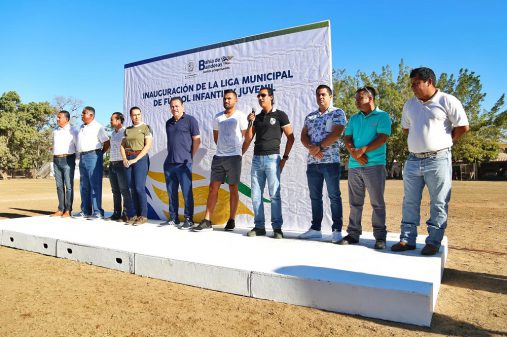 El presidente municipal de Bahía de Banderas, doctor Jaime Cuevas Tello, acompañado por su esposa, la L.T.S. Ana Esperanza Berumen de Cuevas, inauguró la liga Municipal de Futbol Infantil y Juvenil, con lo cual se da un gran paso en la formalización de este deporte en beneficio de niños y jóvenes bahiabanderenses.