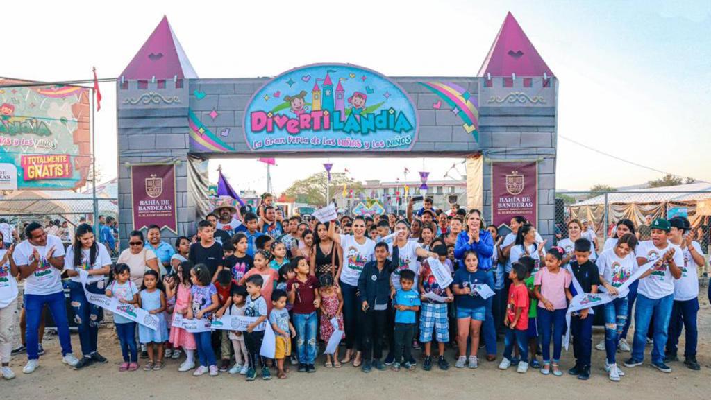 Bahía de Banderas, Nay., a 27 de abril de 2023.- “Los niños tienen derecho a sonreír”, así expreso la presidenta de Bahía de Banderas Mirtha Villalvazo Amaya, en la feria más divertida para todas las niñas y los niños llamada Divertilandia, que el gobierno de Bahía de Banderas por motivo del día de la niña y el niño, organizó para que todas y todos los pequeñines se diviertan y disfruten las atracciones mecánicas, shows, rifas, circo y más sorpresas, en la explanada de Mezcales, así destacó la alcaldesa el primer día de Divertilandia.