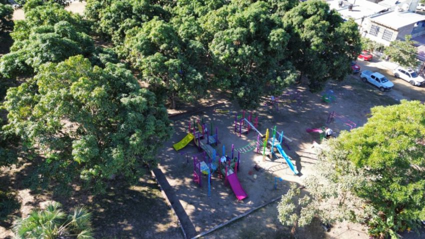 Esta semana se han realizado trabajos en la colonia Vista Hermosa, sobre todo en torno al parque Los Mangos, correspondientes al programa ‘Rescate de espacios públicos’, que consisten en emparejamiento de calles, balizamiento, poda, limpieza, reparación del alumbrado público, así como la instalación de juegos infantiles nuevos y el mantenimiento de otros, entre otros.