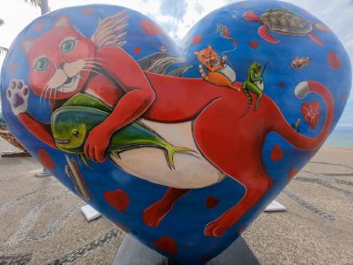 La exhibición consta de 29 figuras en forma de corazón, ilustrados por artistas vallartenses e incluye corazones de Tlaquepaque Late y de otros pueblos mágicos de la entidad, que son exhibidos a lo largo del malecón de la ciudad.