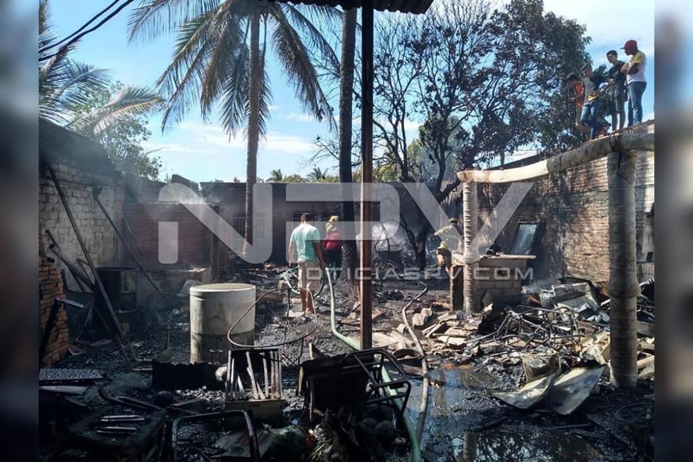 El fuego comenzó en lo que era el patio del domicilio y rápido alcanzó parte de una palapa, lo que era usado como una cocina, provocando serios y cuantiosos daños materiales.