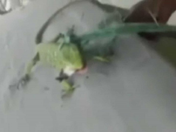 En esta ocasión se trata de una pequeña iguana que es obligada a fumar mariguana mientras un grupo de jóvenes graba con sus celulares.