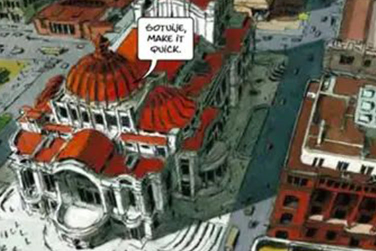 Además, las medidas de la Jornada Nacional de la Sana Distancia tienen similitudes. Por si fuera poco, está incluido un edificio similar al Palacio de Bellas Artes entre los bosquejos del cómic.