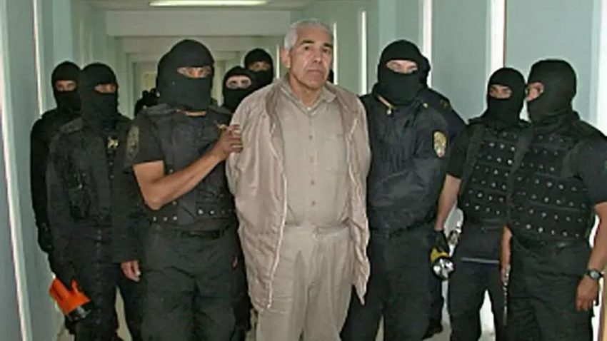 En punto de las 5:58 horas Caro Quintero entró al hospital custodiado por más de una docena de elementos armados. El capo iba esposado de manos y con el uniforme color caqui del penal de alta seguridad.