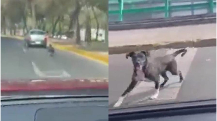 En la grabación compartida por el usuario de Twitter @LordSalmon11 se puede ver cómo el can corre detrás de un auto gris con placas NXT-86-43. Quien graba menciona: “estos cabro&%$ acaban de bajar al perro, no ma$%& me les voy a cerrar. Vean al pobre perro, vean al pobre perrito ahí vienen siguiendo a los dueños”.