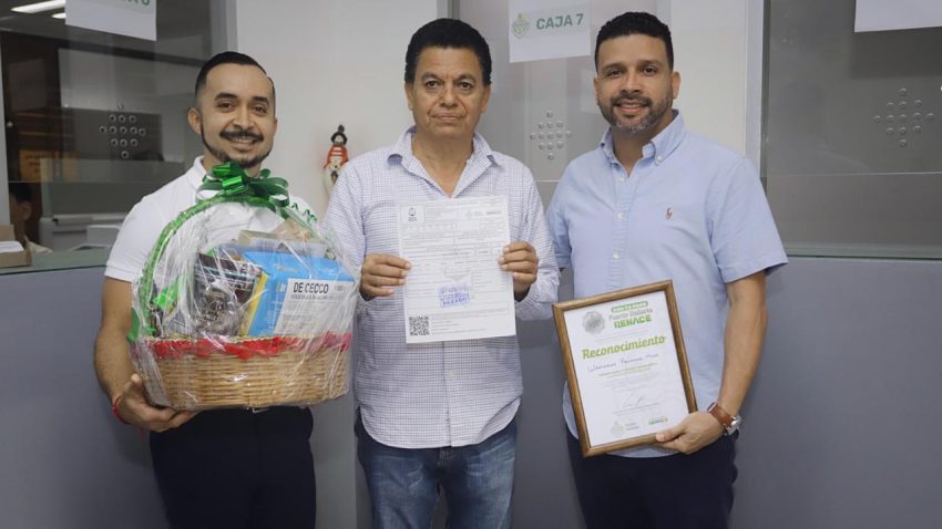 Desde las 10:30 de la mañana del primero de enero Wenceslao Palomar llegó a las instalaciones de la UMA, ahí esperó hasta que dieron las 8 de la mañana de hoy 2 de enero para hacer el debido pago del predial, ahí se le vio contento y agradeció al gobierno de Luis Munguía por el reconocimiento entregado así como una canasta navideña.