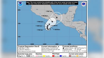 Inicia la Depresión Tropical Uno-E su potencial en el Pacífico