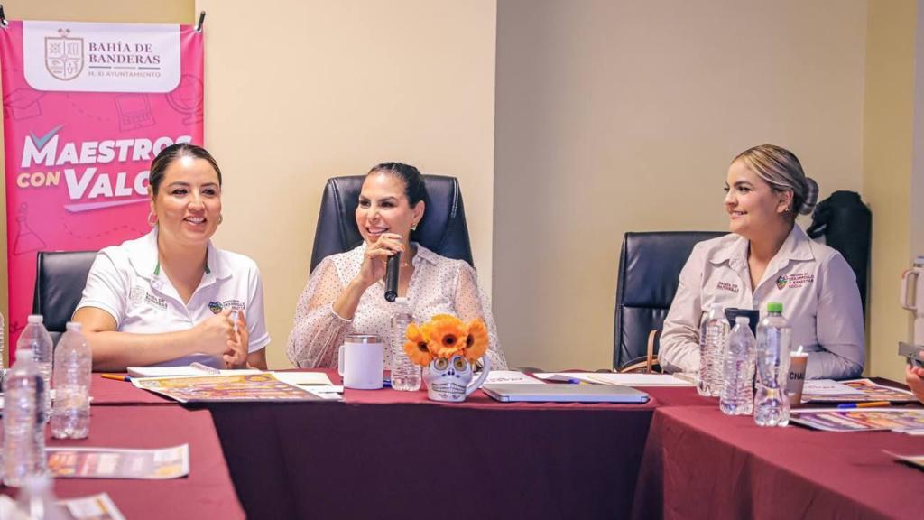 Bahía de Banderas, Nay., 21 de octubre de 2023.- La presidente municipal, Mirtha Villalvazo Amaya, se reunió con jefes de sector y supervisores de primarias y secundarias de Bahía de Banderas, con el propósito de darles a conocer la mecánica de selección de profesores para la segunda etapa del programa «Maestros con Valor».