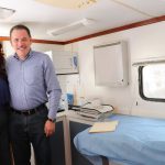 Acompañada por el presidente municipal, doctor Jaime Cuevas Tello, la presidenta del DIF, se dijo contenta porque de nueva cuenta y después de un arduo trabajo de restauración, la Unidad Médica Móvil está siendo utilizada en beneficio de los habitantes del municipio.