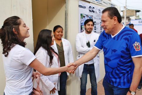 El doctor Jaime Cuevas Tello, presidente municipal de Bahía de Banderas, junto con el rector del CUC, doctor Jorge Téllez López, inauguraron las Brigadas Universitarias en la plaza de San Vicente, la cuales en coordinación con el Décimo Ayuntamiento, brindarán atención médica, sicológica y nutricional, orientación jurídica, juegos deportivos y activación física, entre otros.