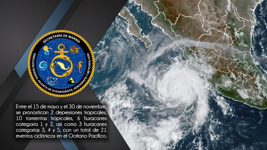 La Secretaría de Marina confirma el inicio de la temporada de huracanes en el Océano Pacífico, del 15 de mayo al 30 de noviembre de 2023. Se pronostican:
