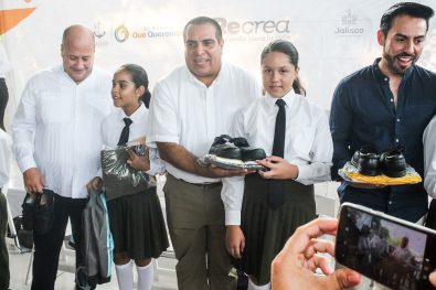 El Presidente Municipal, Arturo Dávalos Peña y el Gobernador del Estado, Enrique Alfaro Ramírez, encabezaron este jueves el arranque del Programa ‘Recrea’ que dota a los alumnos de educación básica de escuelas públicas, de uniformes, zapatos y útiles escolares para que cuenten con los materiales necesarios para su educación.