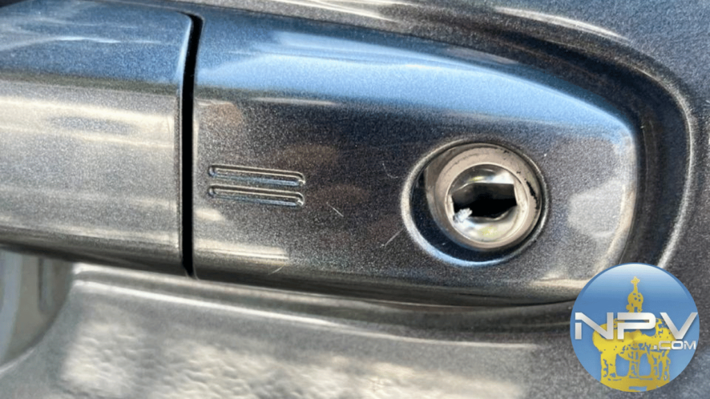 «Cabe mencionar que se encontraban una patrulla y 2 oficiales dialogando con ellos, ya al llegar a casa, y mientras trataba de cerrar el coche me di cuenta que la chapa del lado de conductor estaba dañada».