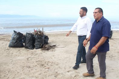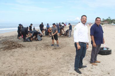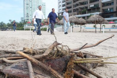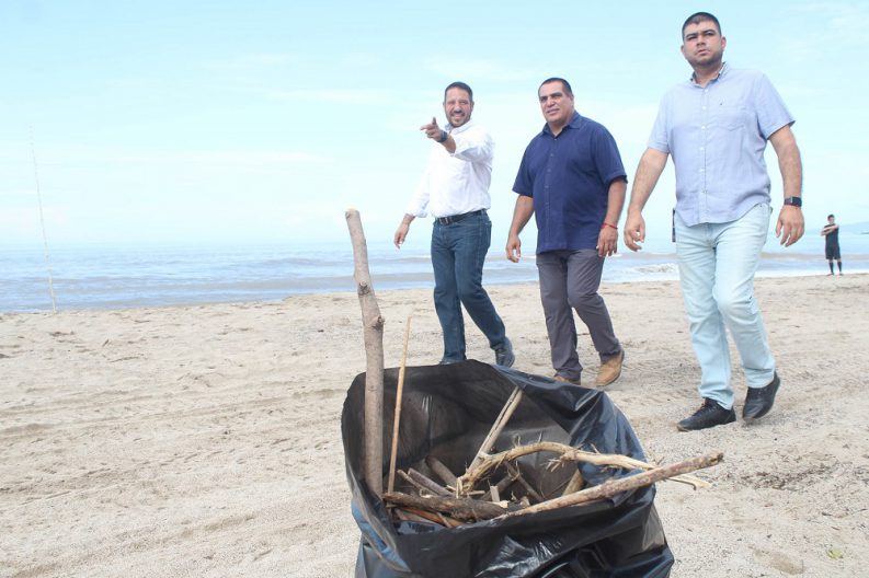 “Estamos haciendo la limpieza de las playas, ya que esta depresión tropical ‘Narda’ nos bajó árboles, refrigeradores, estufas, colchones; mucha basura entra al mar y el mar nos lo devuelve a la playa, por eso estamos haciendo la limpieza de toda la palizada, de todo lo que nos encontramos para que nuestras playas estén limpias. Todos trabajando por el puerto que queremos”, afirmó el alcalde.
