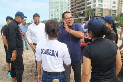 El alcalde Arturo Dávalos, acompañado del director de Desarrollo Social, Víctor Bernal Vargas, supervisó las tareas realizadas en las playas por parte del personal de Servicios Públicos, Medio Ambiente, Obras Públicas, los cadetes e instructores de la Academia de Seguridad Ciudadana, entre otros, para devolver a estas áreas su limpieza.