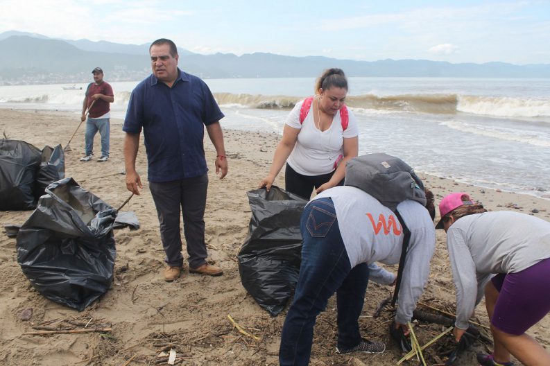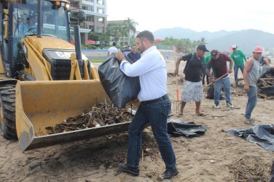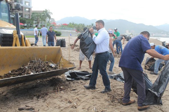 El alcalde vallartense supervisó los trabajos para el retiro de ramas, basura y electrodomésticos arrastrados por las corrientes al mar