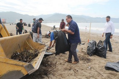 El Gobierno Municipal que preside Arturo Dávalos Peña, continúa con las labores de saneamiento tras el paso de la depresión tropical ‘Narda’, en esta ocasión con la limpieza de las playas, donde las corrientes pluviales arrojaron una cantidad importante de desechos, árboles, ramas y cacharros, por lo que se busca preservar estos espacios y mantener la actividad turística del puerto.