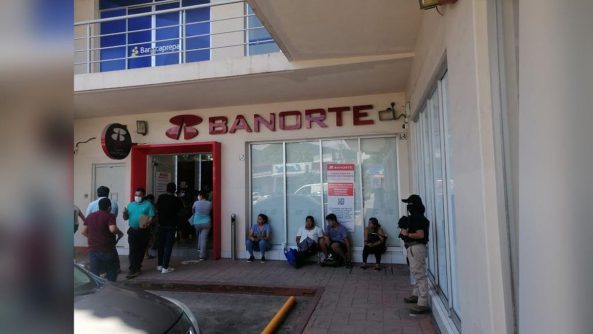 En los bancos, los agentes se encuentran distribuidos en las periferias y afuera de las sucursales para detectar personas sospechosas y evitar que los usuarios sean víctimas de robos, poncha-llantas y timadores.