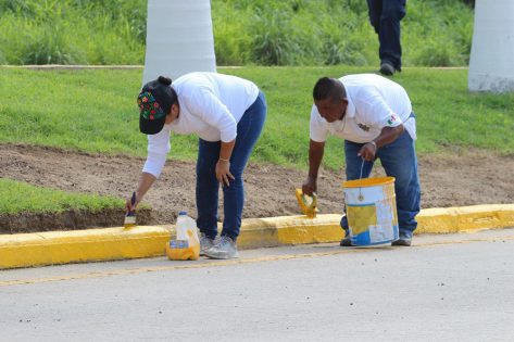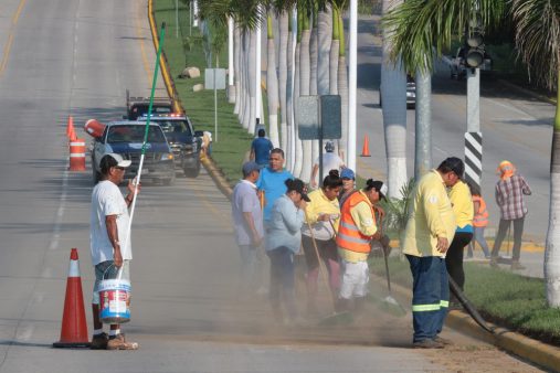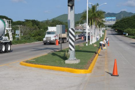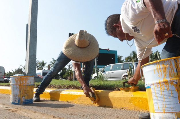 Finalmente, destacar que se continúa, como cada fin de semana, los trabajos de embellecimiento y reconstrucción de machuelos en el camellón del Bulevar Riviera Nayarit, cuyas etapas realzadas van desde la entrada a los 4 carriles hasta Bucerías, avanzando con el retiro de arena, grava y basura, reconstruyendo y pintando machuelos, recorte del pasto, pintura de los postes de luminarias y reparación de aquellas que se encuentren dañadas.