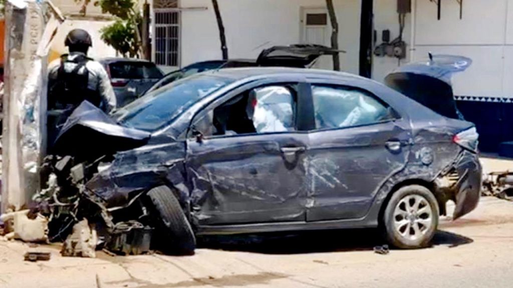 Durante su huida, el vehículo involucrado impactó primero contra una unidad del transporte público, luego con una motocicleta y finalmente terminó por colisionar contra un poste.