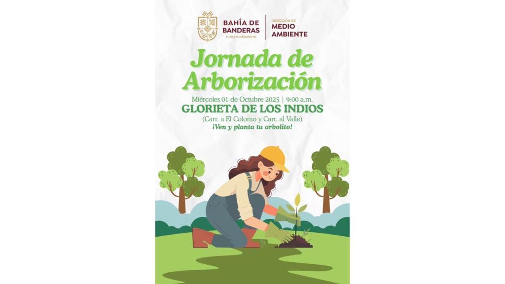 El H. XII Ayuntamiento de Bahía de Banderas, que encabeza el presidente municipal Héctor Santana, a través de la Dirección de Medio Ambiente, convoca a la ciudadanía a participar en la próxima Jornada de Arborización.