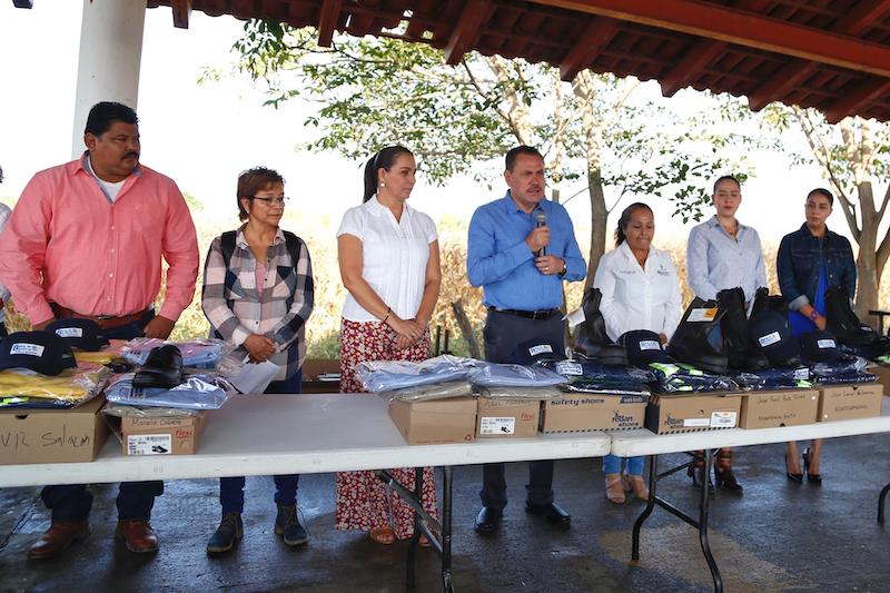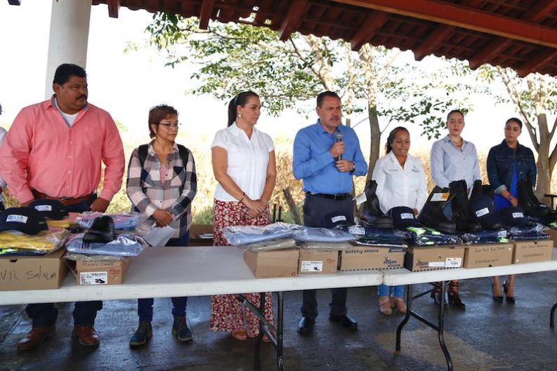 En las instalaciones del Rastro Municipal de Bahía de Banderas de San Juan de Abajo, 236 trabajadores de confianza, pertenecientes a las cuadrillas de Servicios Públicos Municipales y Rastro, recibieron del presidente municipal, doctor Jaime Cuevas Tello, calzado, uniformes y equipo especializado acorde a las tareas que realizan.