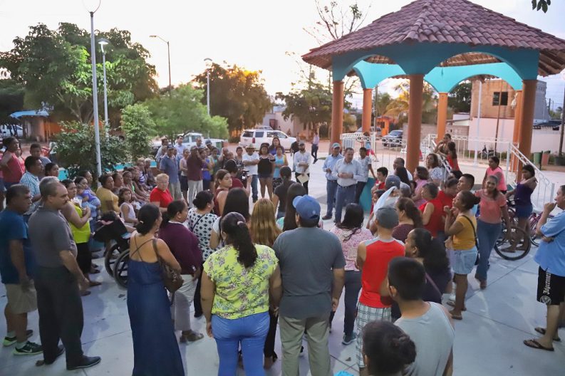 “Durante muchos años estuvo esta zona a oscuras y a partir de que nos dimos la tarea de reparar estas lámparas con luz blanca, más voltaje y ahorradoras de energía, estamos viendo que ya la colonia tiene otro aspecto y ya están utilizando la plaza los jóvenes y las familias, que es la finalidad de esto”, señaló el Alcalde.