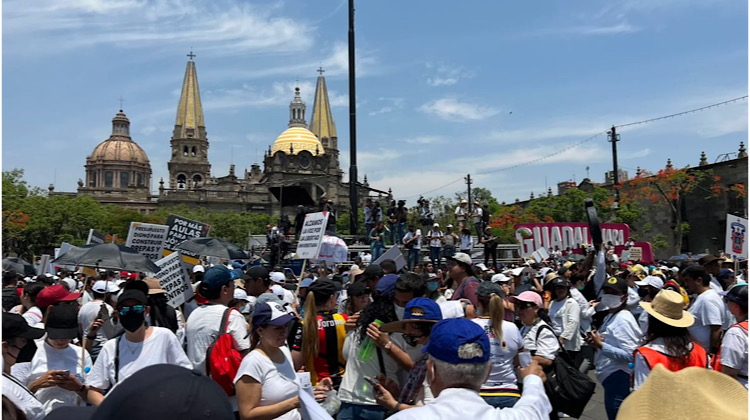 Este 26 de mayo, desde las 11:30 de la mañana, al rededor de 103 mil participantes se dieron cita en las cuatro plazas del centro de Guadalajara, Jalisco, para exigir al gobernador del estado, Enrique Alfaro Ramírez, entregar un presupuesto justo a la Universidad de Guadajara y que “regrese los 140 millones de pesos que retiró a la casa de estudios”.