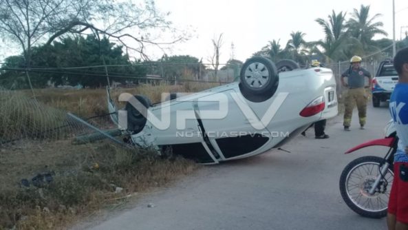 Un joven de 19 años de edad conducía un auto compacto, perdió el control chocó con un poste y volcó. El accidente ocurrió en avenida Palma Real en Puerto Vallarta.
