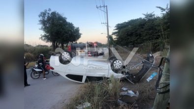 Circulaba sobre la avenida Palma Real y poco antes de llegar al cruce con Víctor Iturbe, chocó con un poste de madera al parecer de Telmex y posteriormente volcó.
