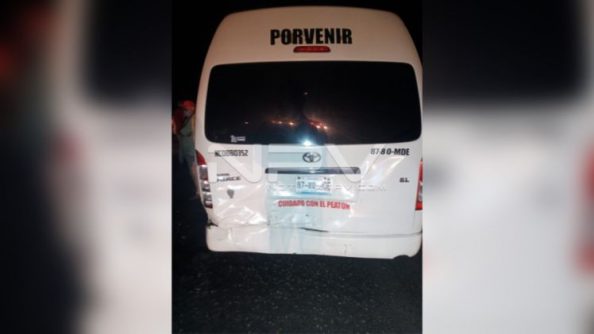 Este vehículo quedó destrozado del frente lo boté impactarse por alcance contra una camioneta marca Toyota, Hiace, en color blanco, modelo 2019, con placas de circulación del Estado de Nayarit, taxi de El Porvenir, conducido por Gregorio, vecino de Valle de Banderas.