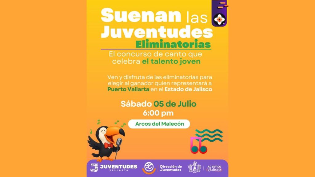 Este sábado 5 de julio a las 6:00 p.m., Los Arcos del Malecón serán sede de las eliminatorias del concurso “Suenan Las Juventudes”, donde jóvenes de Puerto Vallarta mostrarán su talento vocal. El evento es parte de una estrategia estatal respaldada por la Dirección de Juventudes municipal.