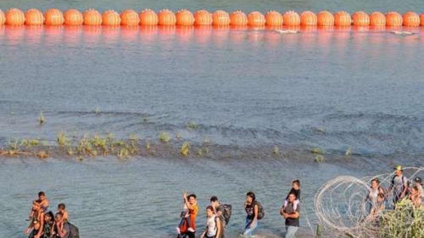 Decenas de boyas de color naranja brillante del tamaño de una bola de demolición han creado una barrera de agua más larga que un campo de fútbol en un tramo del río por el que los inmigrantes suelen intentar cruzar desde México. Texas también ha instalado alambre de púas y vallas de acero en la frontera, y ha facultado a agentes armados para detener a los migrantes con cargos de invasión de propiedad privada.