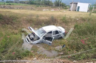 Los hechos ocurrieron esta tarde del sábado 7 de marzo del 2020, por una brecha aledaña al poblado de San Juan de Abajo, donde testigos manifestaban que un auto Chevy, se había volcado, el cual quedó dentro de un canal y donde afortunadamente el joven que lo conducía resultó ileso.