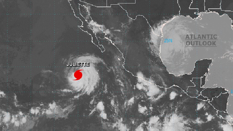 El centro de huracanes prevé que Juliette se mantendrá lejos de tierra firme y no se han emitido alertas o avisos.