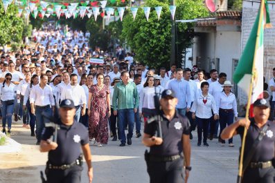 Acompañado por su esposa, la Presidenta del DIF Bahía de Banderas, Ana Esperanza Berumen de Cuevas, autoridades militares, síndico y regidores, el Alcalde bahiabanderense, agregó que a 209 años, el mensaje sigue siendo el mismo: “Sólo juntos podemos lograr derribar los obstáculos y alcanzar las metas; Bahía de Banderas festeja la Independencia de México, orgullosos de nuestra historia y preparados a seguir la lucha para lograr un mejor futuro para nuestros hijos”.