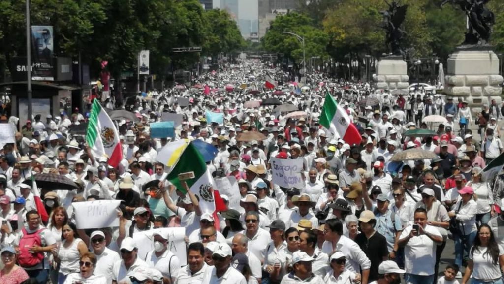 Alrededor de las 11:00 horas de este domingo, un contingente de personas vestidas de blanco comenzó una marcha del Monumento a la Revolución hacia el Zócalo capitalino, en defensa de la Suprema Corte de Justicia de la Nación (SCJN).