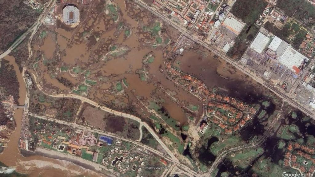 Es tal la devastación, que a través de redes sociales se difundieron imágenes satelitales de Google Earth, en alta definición en las que se observan los daños causados por ‘Otis’, tales como los techos afectados de casas, las afectaciones en calles, o las condiciones en las que quedó la cancha de tenis del Abierto Mexicano.
