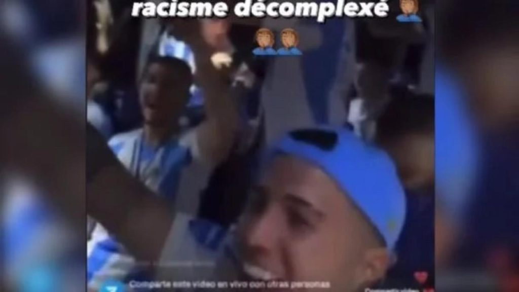 La polémica canción dice lo siguiente: “Juegan con Francia, pero son de Angola, qué bonito que vayan a correr con transexuales, su mamá es nigeriana, su papá camboyano, pero en su pasaporte: francés”. El cántico hace referencia al origen de algunos jugadores franceses, incluido Kylian Mbappé, además de contener insultos homófobos.